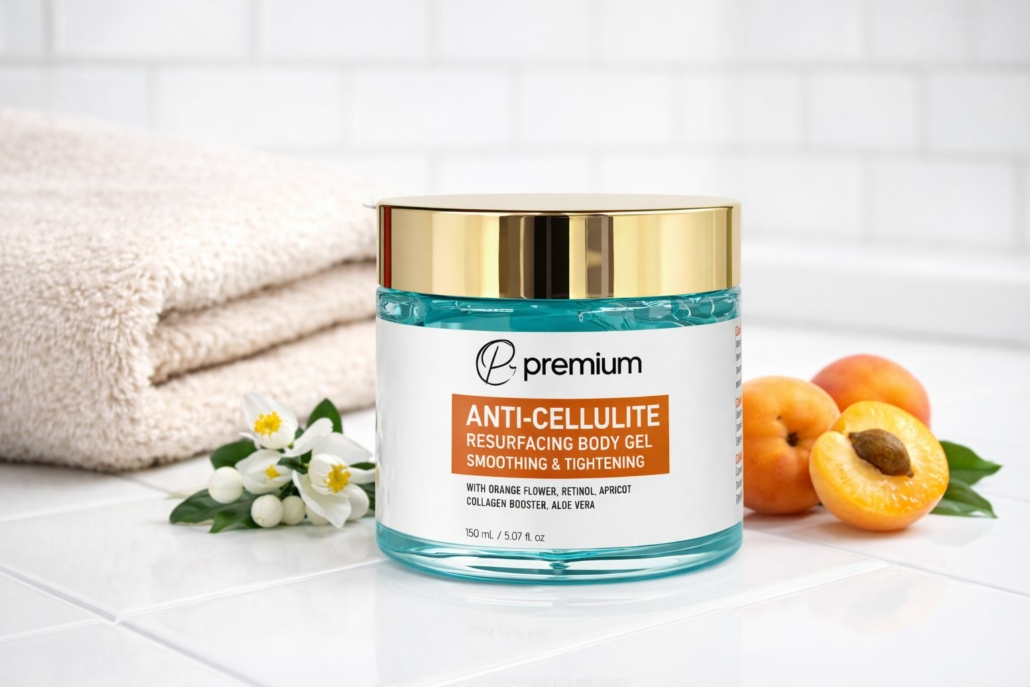 Verstevig, verzacht en egaliseer je huid met onze Anti-Cellulite Resurfacing Body Gel, een geavanceerde verzorging die doelgericht werkt tegen het verschijnen van cellulite. Deze luxe body gel combineert wetenschappelijk ondersteunde ingrediënten zoals retinol, collageen booster, abrikozenextract, sinaasappelbloesem en aloe vera om de huidtextuur te verfijnen en de elasticiteit te verbeteren.